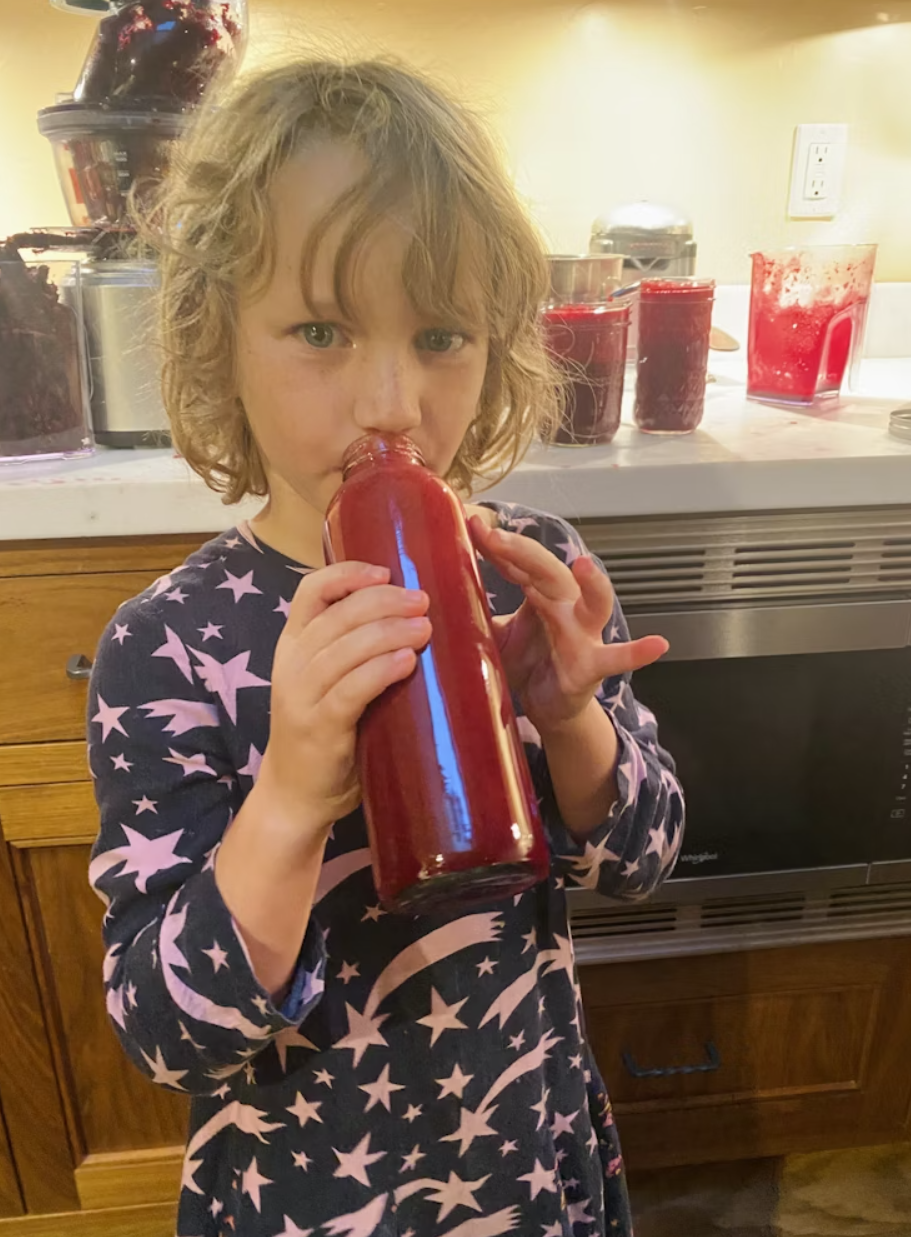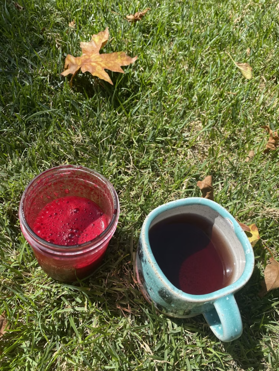 Sitting in the grass alternating root juice and tea