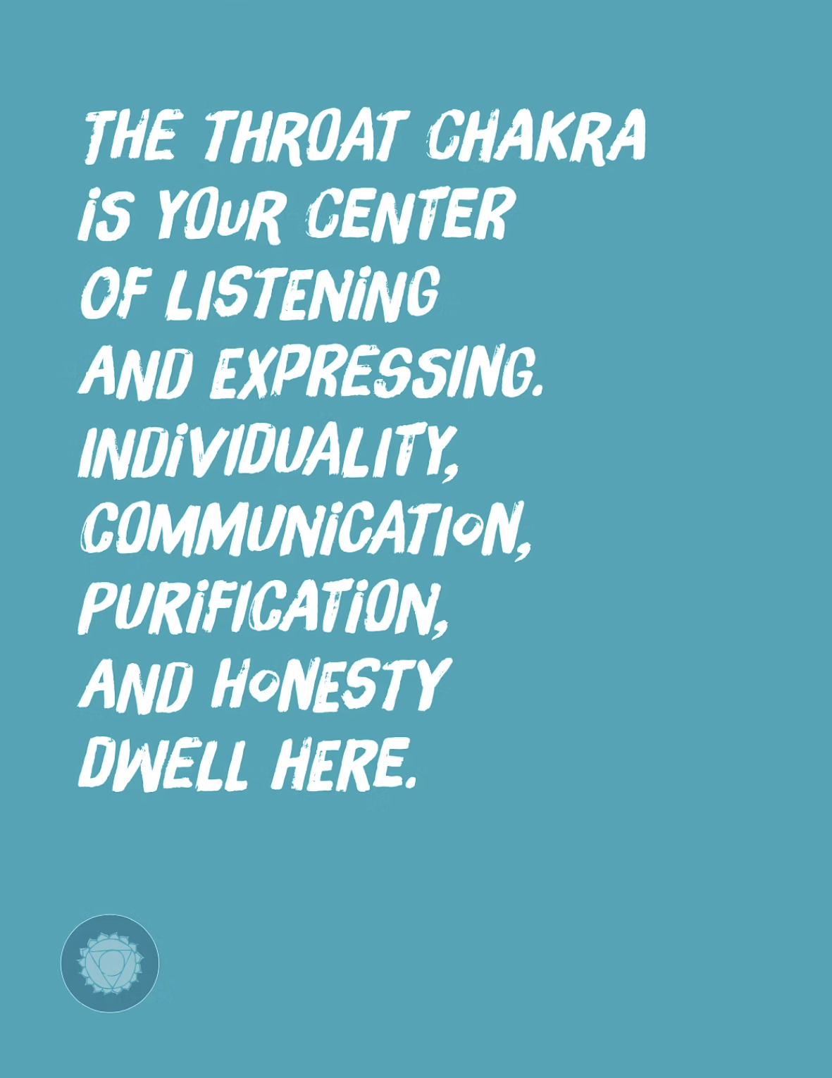 The Throat Chakra is the gateway for connection with others. This communication center is from where you speak, express, and listen. On this truthful day of the Throat, take a moment to sing a song (or yell or roar!) on your way to work, in the shower, or wherever you feel comfortable belting it out.