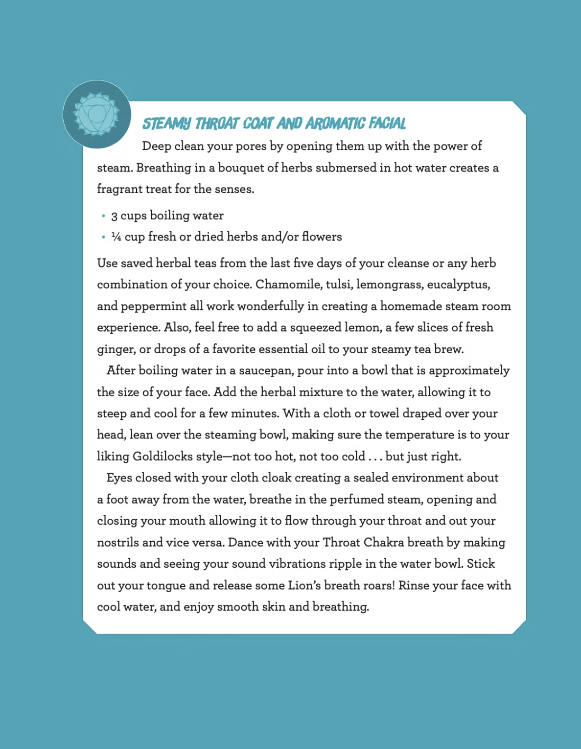 Sometimes being silent is the medicine for this day of your cleanse. Many have overactive Throat Chakras that spew, babble and gossip. Unharnessed energy oftentimes manifests in unproductive, often harmful ways. Speak . . . and LISTEN. Explore your voice today, and also be open to listening to life on a deeper level.