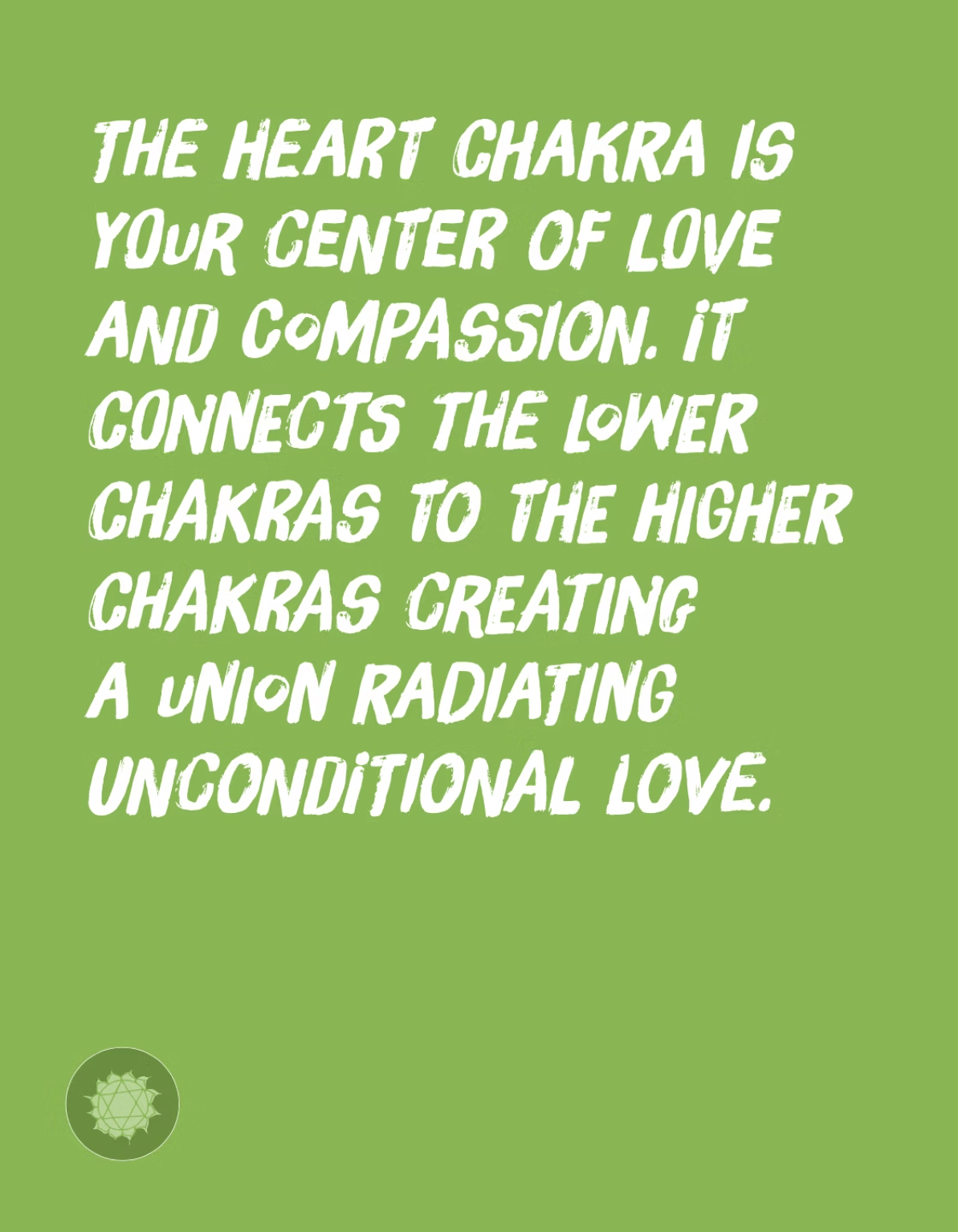 The Heart Chakra governs marriage, partnership, and commitment of all types. Being in relationship, we are asked to be completely honest, no hiding or holding back. The cobwebbed corners of half-truths or denials must be swept out and illuminated. Loving a parent, spouse, child, friend, pet, or other is a way of extending and expanding the heart outside our own selves. This reminds us that we are a web of interconnected organisms.