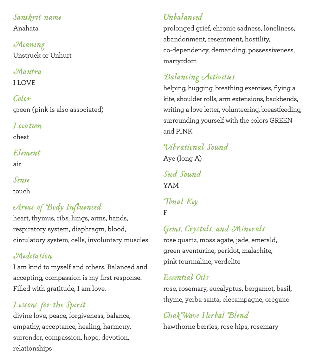 Now reverse the process. Breathe in the positive, the beautiful, the compassionate. Exhale the hurt, the outdated, the story you may be living that no longer serves you. This steady flow of breath in and out helps to purify the body. Beyond our personal stories of heartbreak and sadness there is a knowing that we are infinite and whole. When we have cleared the hurts and griefs from the past, this is where the unstruck, unstuck, unhurt, unharmed and freeing air element of the Anahata Chakra comes into play.